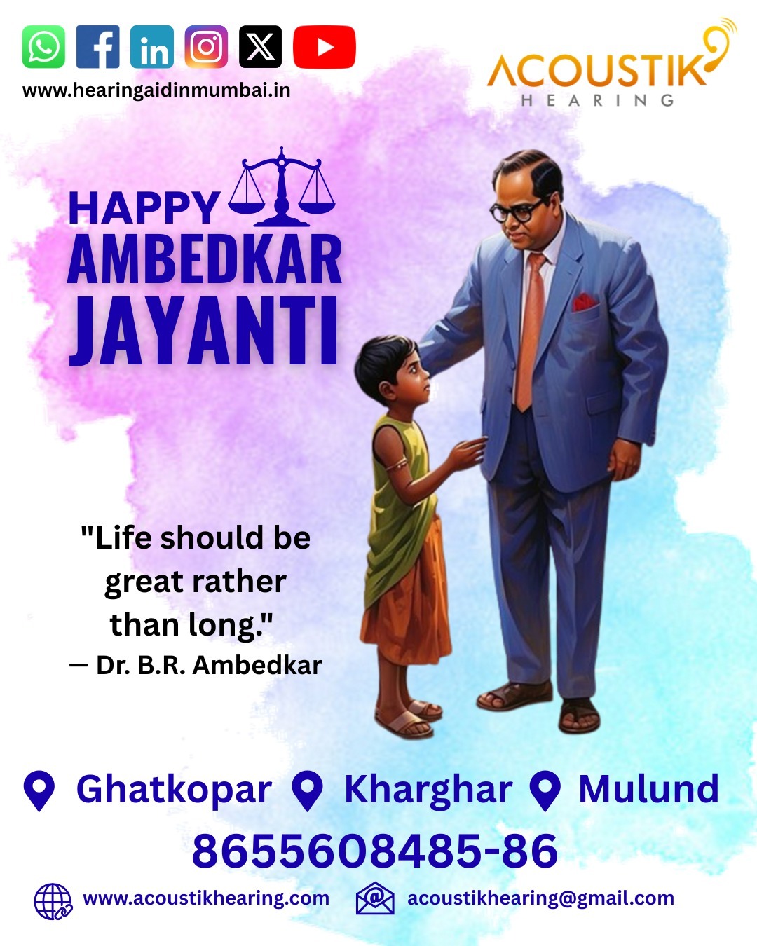 In honor of Ambedkar Jayanti, Acoustik Hearing and Speech Clinic reaffirms its commitment to providing affordable and accessible hearing and speech services. We believe that professional audiology shouldn't be a luxury—it is a fundamental part of an individual's right to a high quality of life.